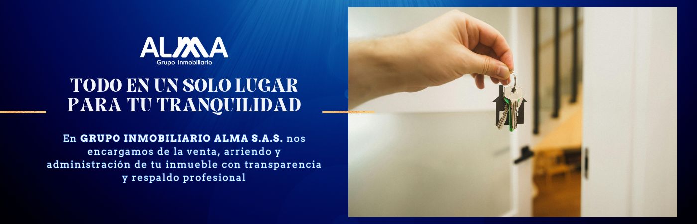 En Grupo Inmobiliario Alma S.A.S. ofrecemos un servicio integral en la venta, arriendo y administración de inmuebles. Nos encargamos de todo el proceso con seriedad y transparencia: desde la promoción y acompañamiento en las visitas hasta la selección de clientes, la firma de contratos y la gestión administrativa. Al confiar en nosotros, evitas riesgos y fraudes, y cuentas con un aliado que garantiza seguridad, asesoría personalizada y resultados efectivos para tu patrimonio.